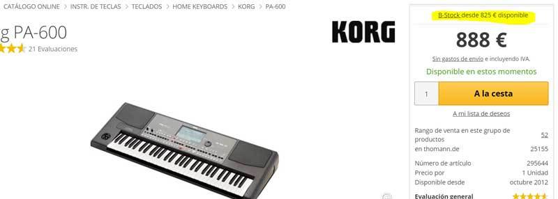 Si vous voulez voir le stock B en général, cliquez sur le lien « Éruptions » ou soldes, mais une autre bonne façon de les rechercher est d’aller à l’instrument en général qui vous intéresse et de voir s’il y a une copie de celui-ci dans le stock B. On le voit sur une petite vue, à droite comme sur l’image (image en espagnol, mais elle est la même dans toutes les langues) en jaune :